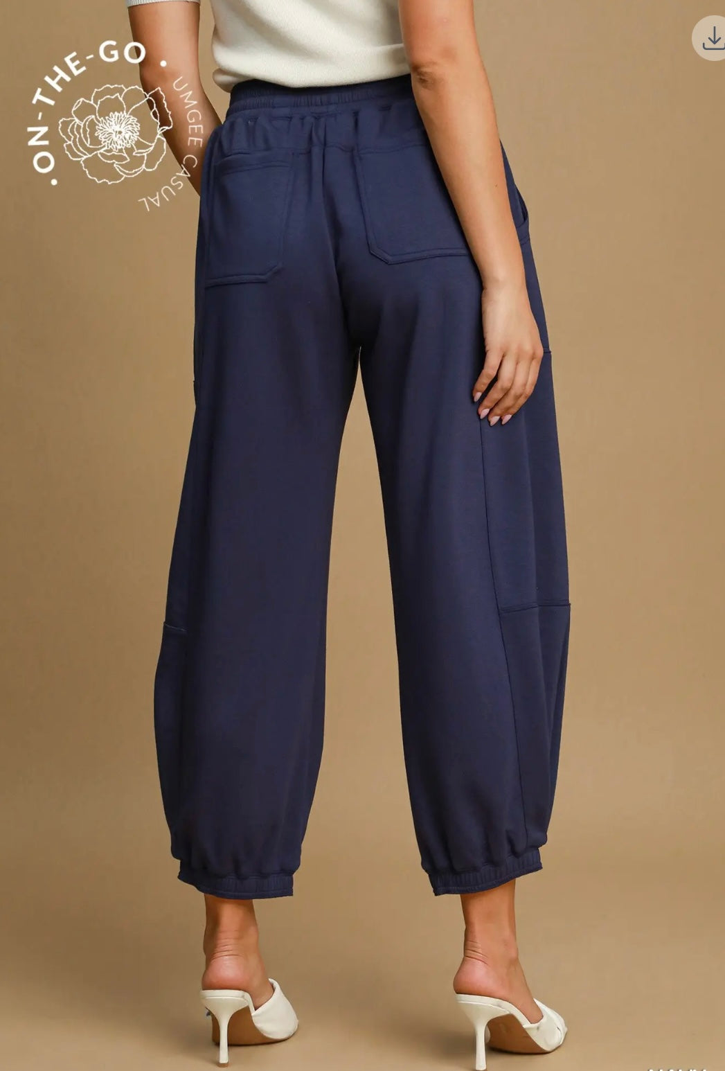 Luxe knit fabric, relaxed fit, pockets, joggers bottom