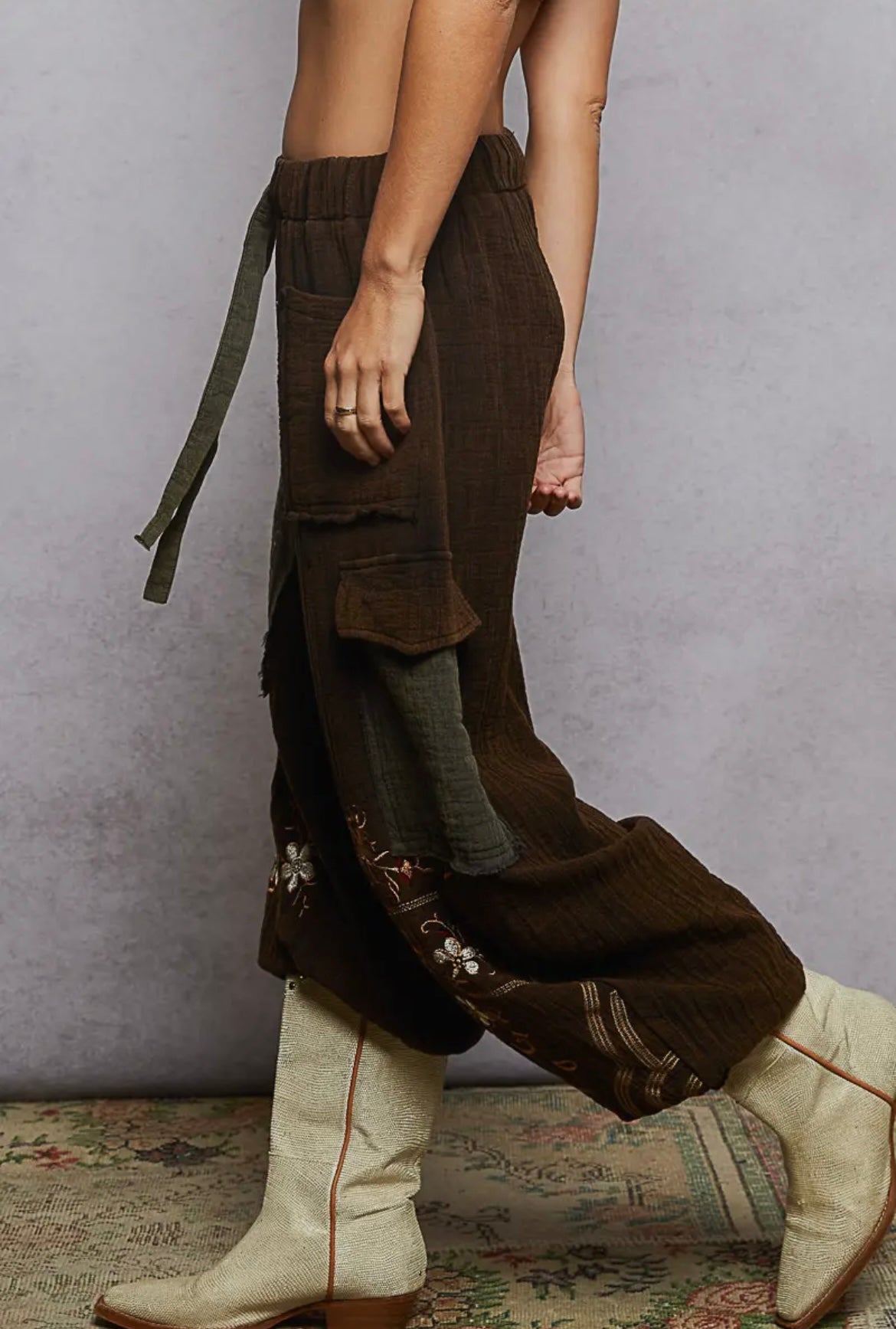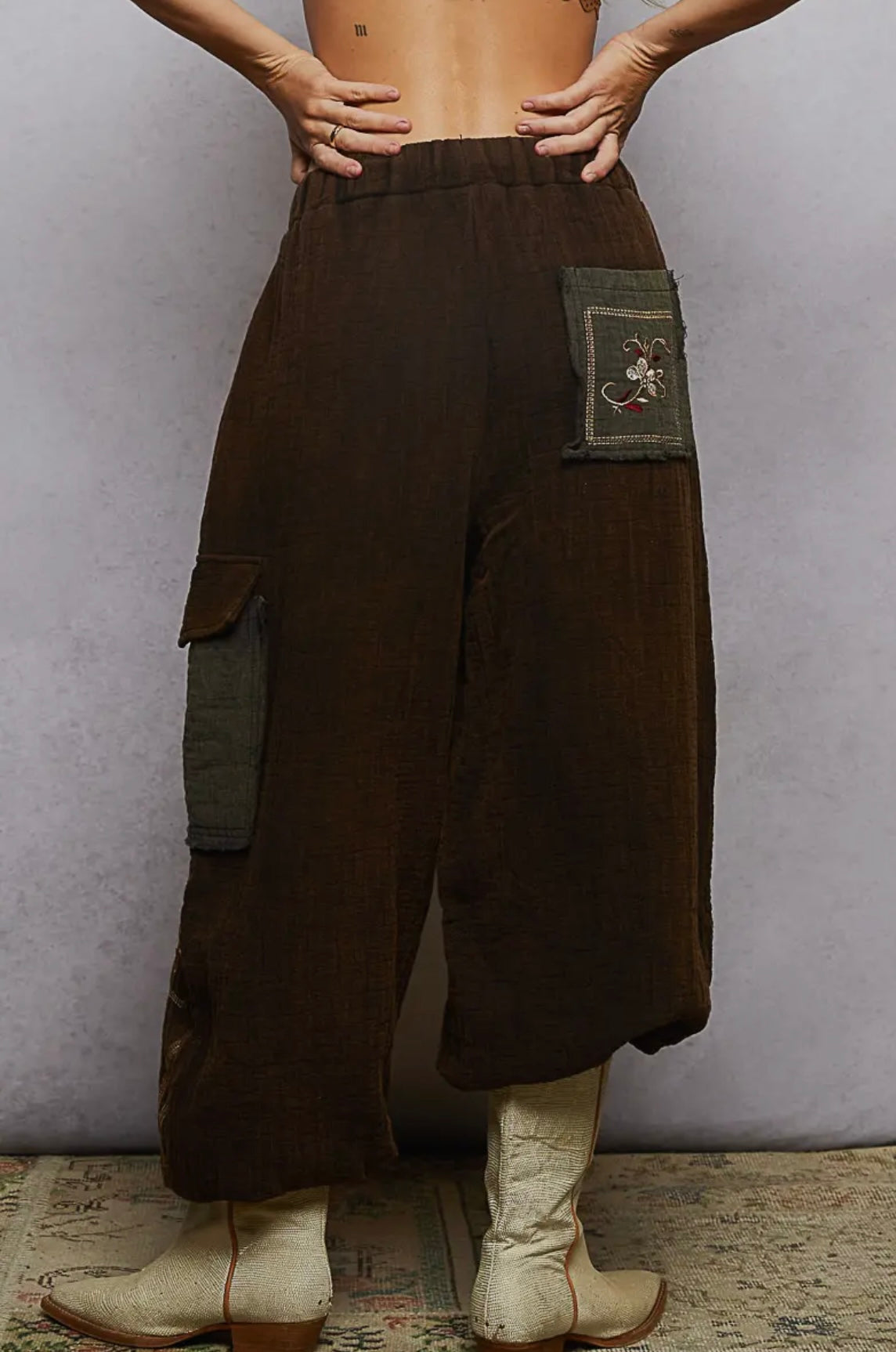 Embrace comfort and style with these playful Night Bloom Harem Pants. Crafted from soft, breathable 100% cotton double gauze, they feature a roomy fit and fun embroidered floral accents. Patch details and various pockets add practical charm, making these pants perfect for relaxed days filled with adventure.