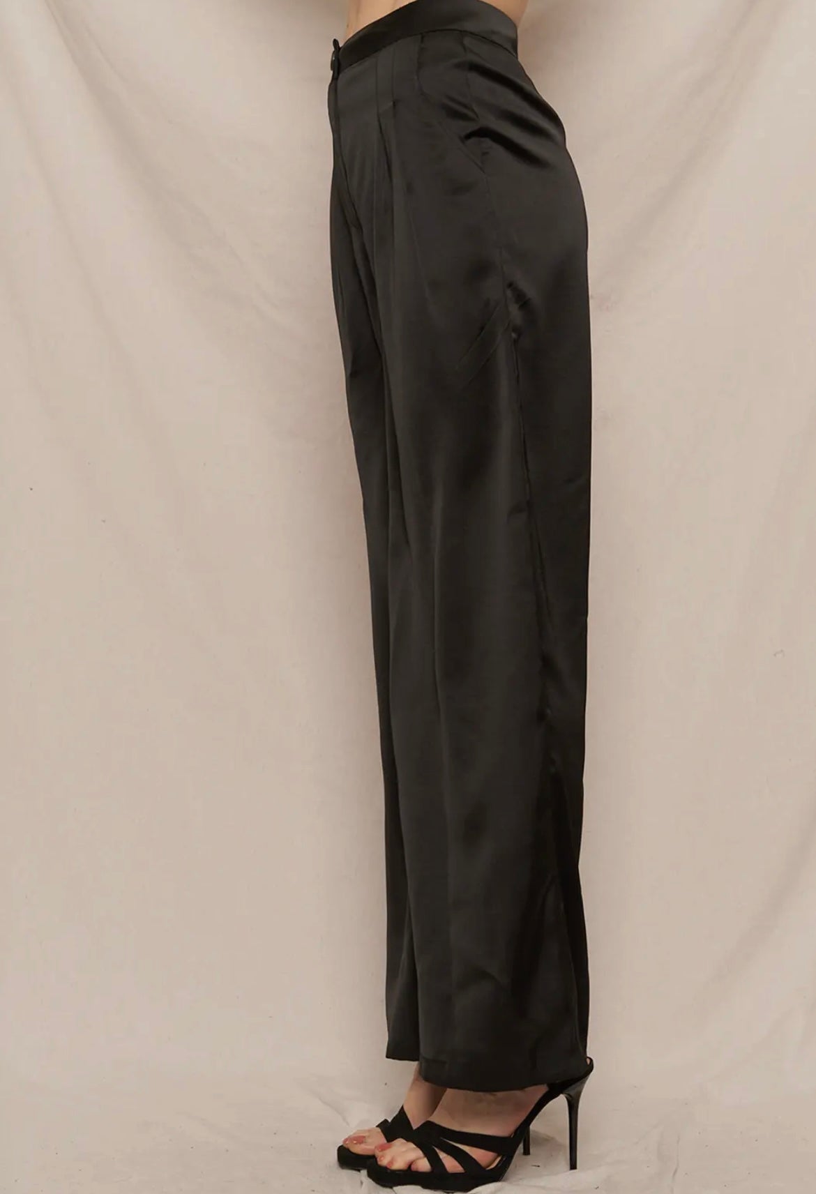 Gorgeous Satin Pants, button and zipper closure, no stretchBlack